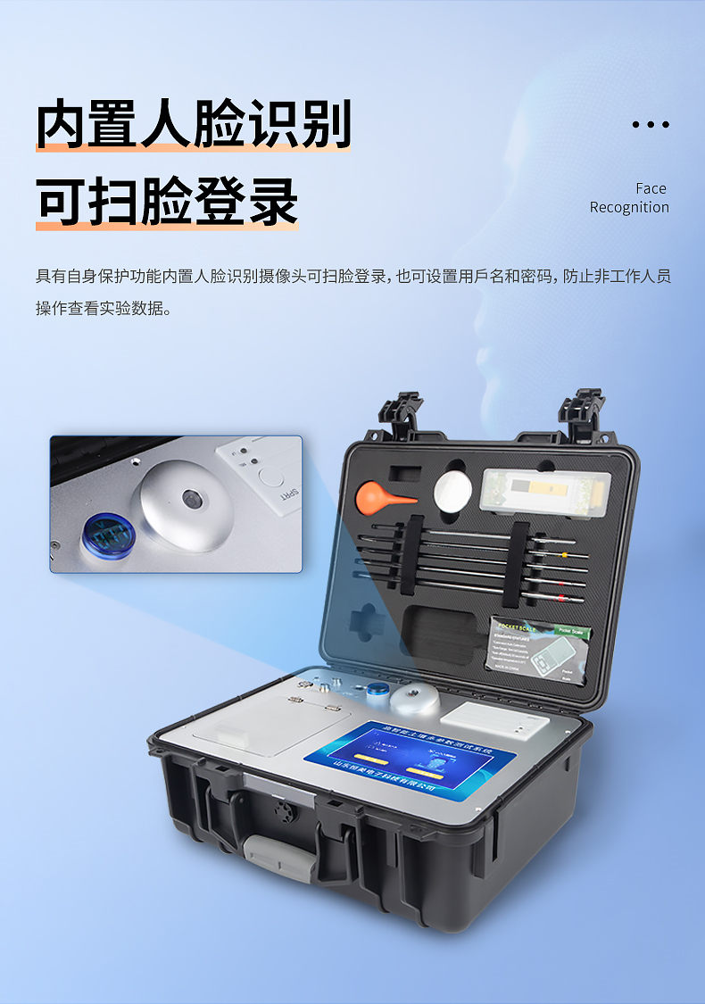 7、具有自身保护功能,内置人脸识别摄像头可扫脸登录,也可设置用户名和密码,防止非工作人员操作查看实验数据。