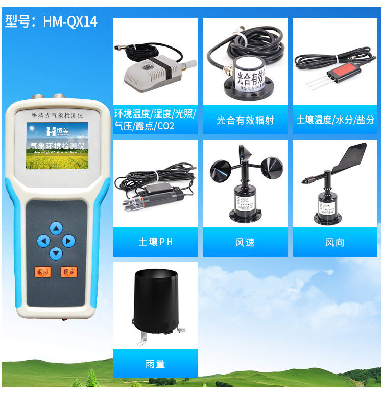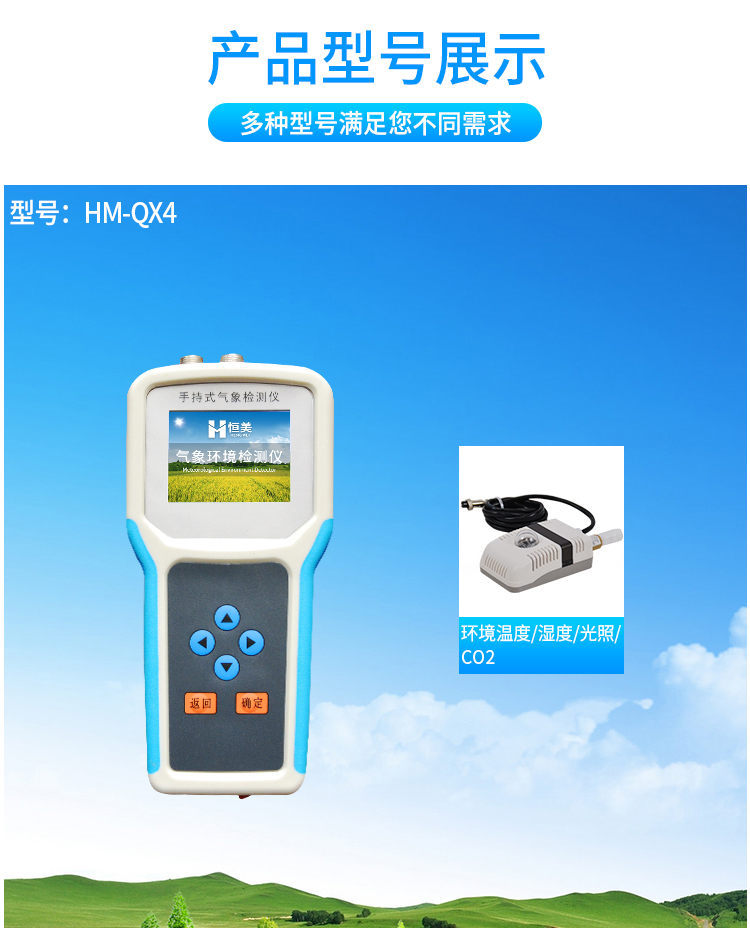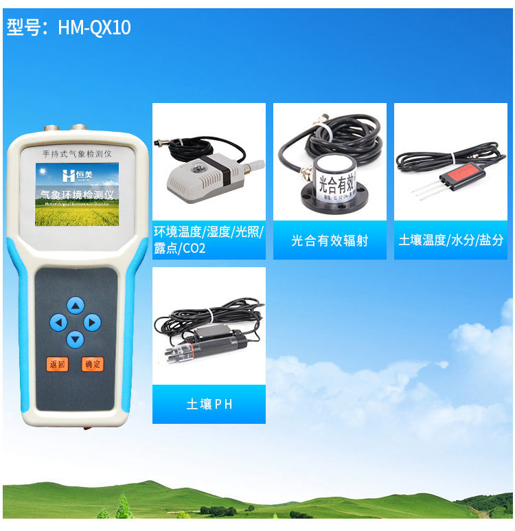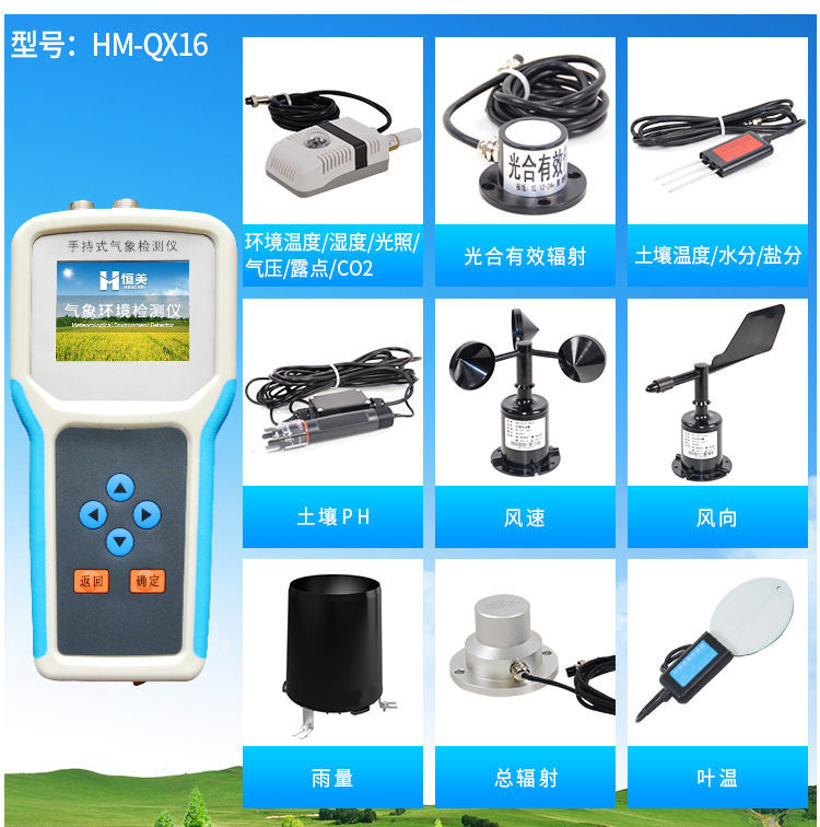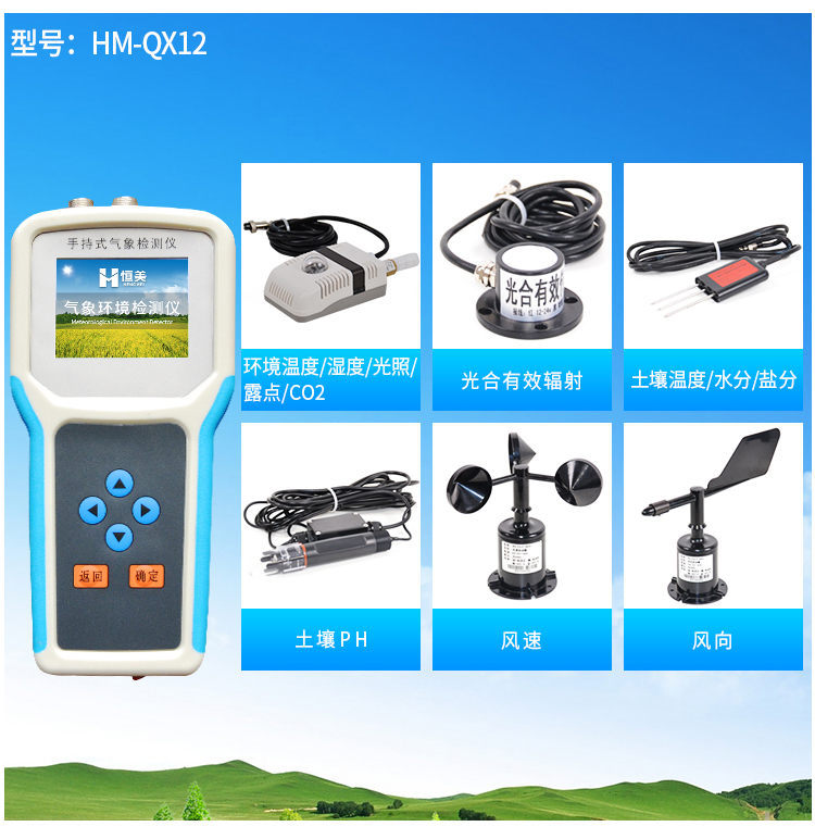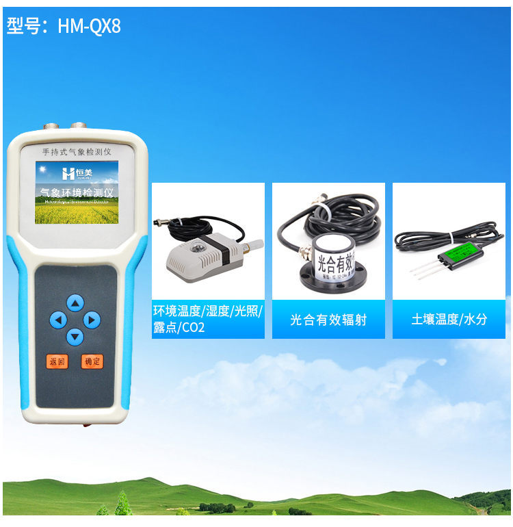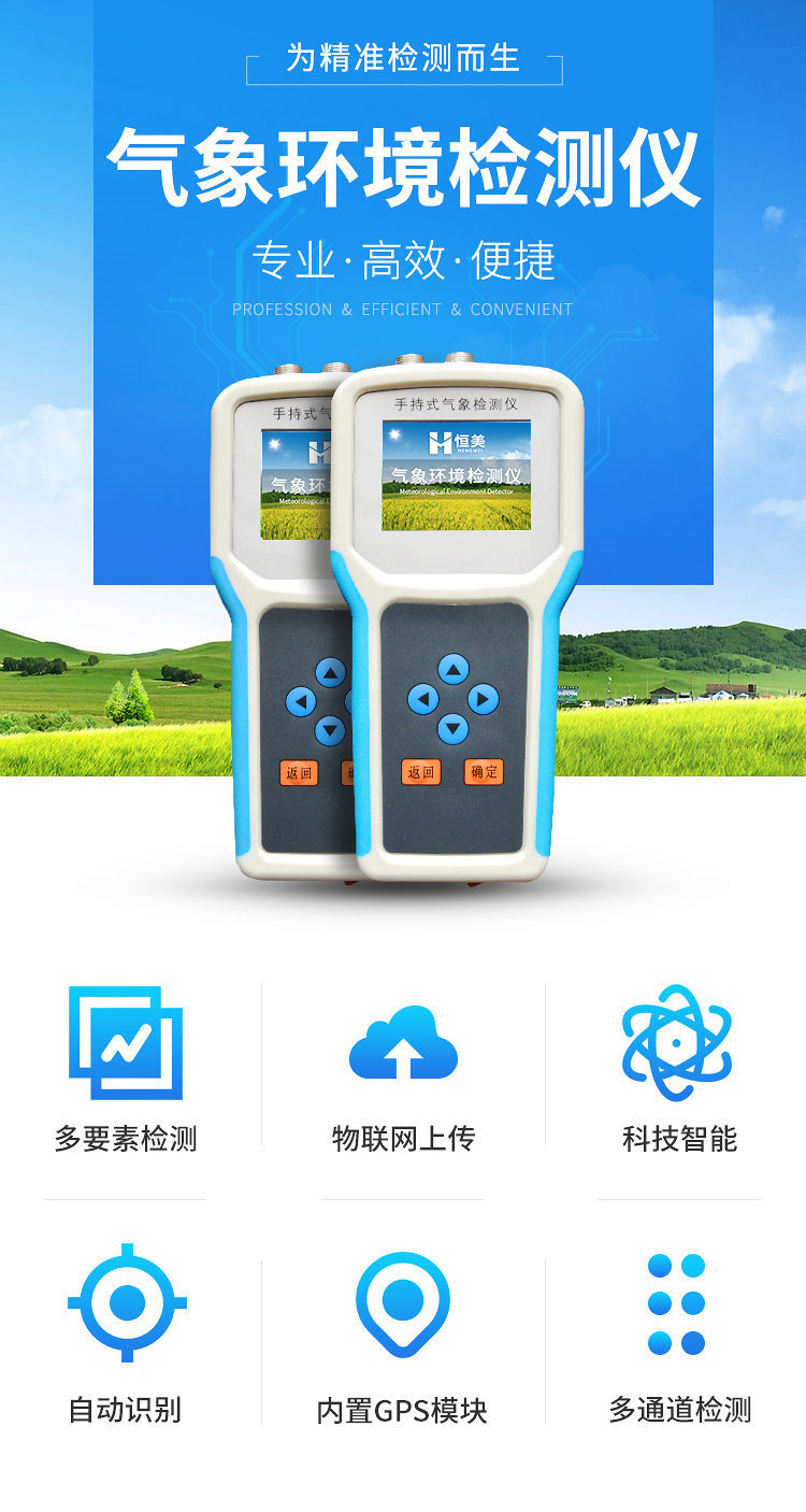 手持式智能农业气象环境检测仪是我们专门针对农田、草场局部小尺度环境设计的,对与植被和农作物生长密切相关的土壤、水气等环境参数监测的农田小气候站。它主要观测与农业相关的空气温度、空气湿度、光照强度、二氧化碳浓度、露点温度、光合有效辐射、土壤温度、土壤湿度等8个环境参数气象要素,为农业科研、农业生产等提供良好的支持。