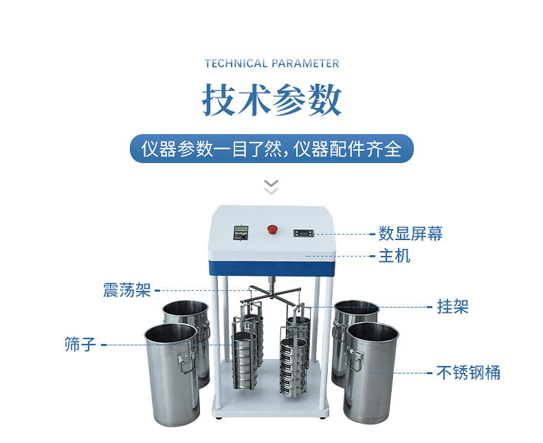 4、标准筛孔径:10mm,7mm,5mm,3mm,2mm,1mm,0.5mm,0.25mm。(可选配其他规格孔径)