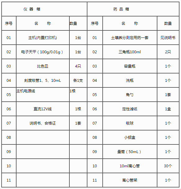 配套齐全:该仪器集药、器、仪为一体,携带方便,相当于一个小型实验室。适于农业服务部门或农资经销商、肥料厂商测土施肥和鉴别肥料真假。